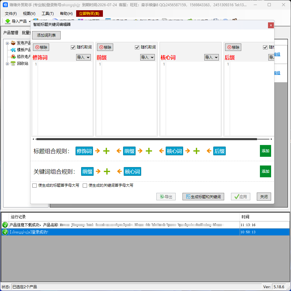 7.智能标题关键词组合:根据关键词进行智能组合,提升产品标题的质量,增加搜索曝光机会。