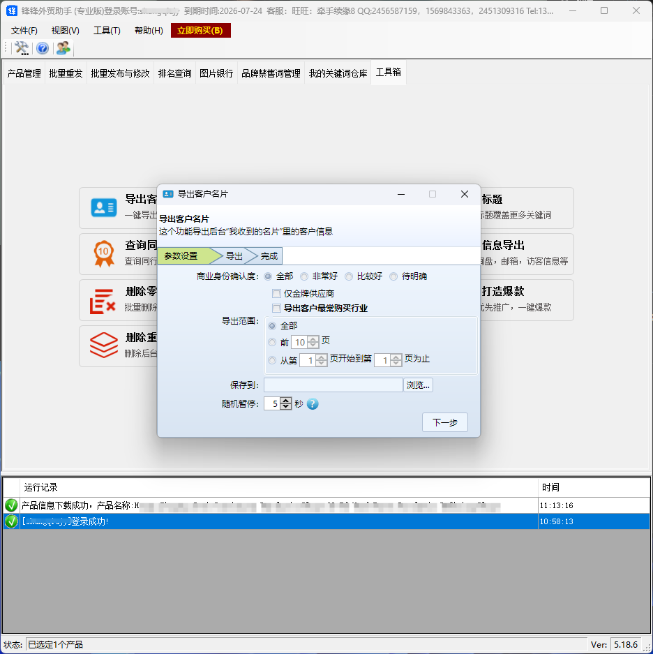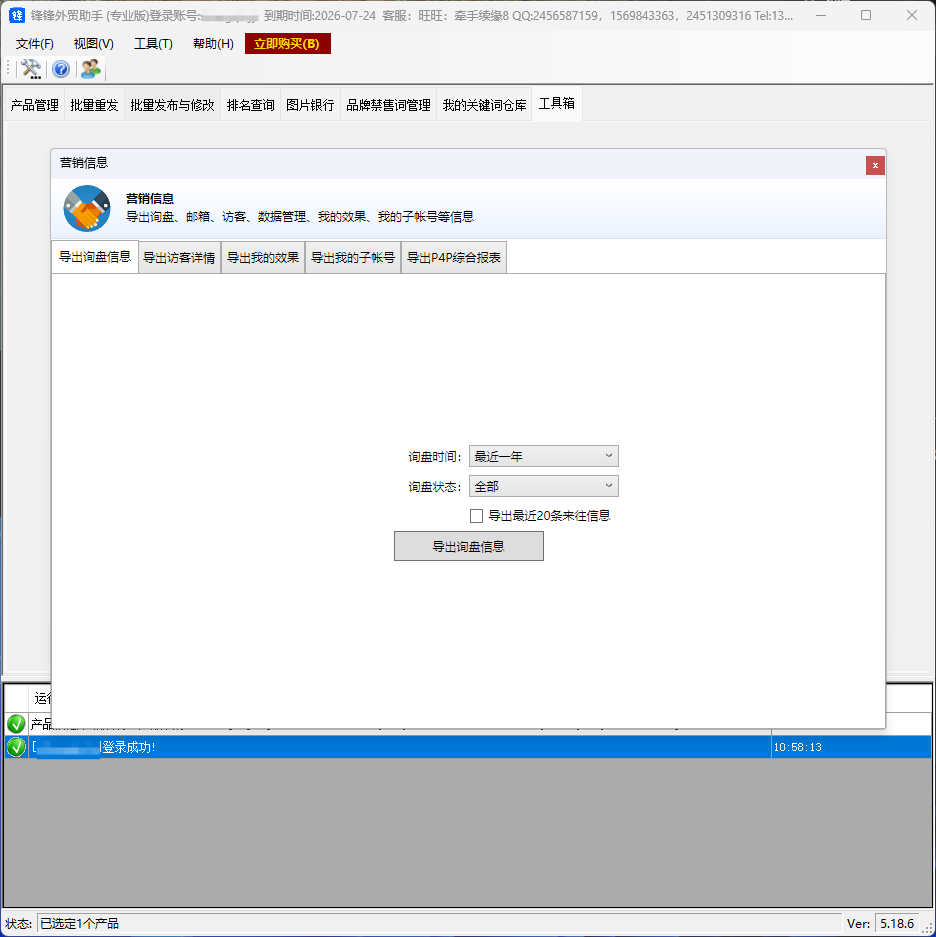 11.导出客户名片、询盘/邮箱/p4p综合报告/访客等信息:便于管理和跟进客户信息。