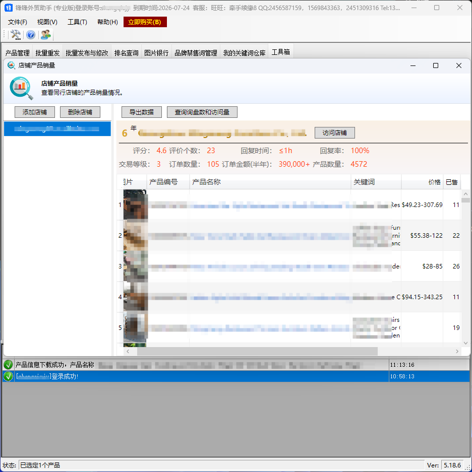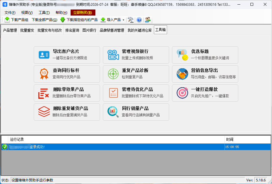 "让锋锋外贸助理手您快速批量编辑、发布产品,一键打造爆款,深度数据分析,智能关键词排名查询,多语言发布,客户信息管理等一系列功能!
